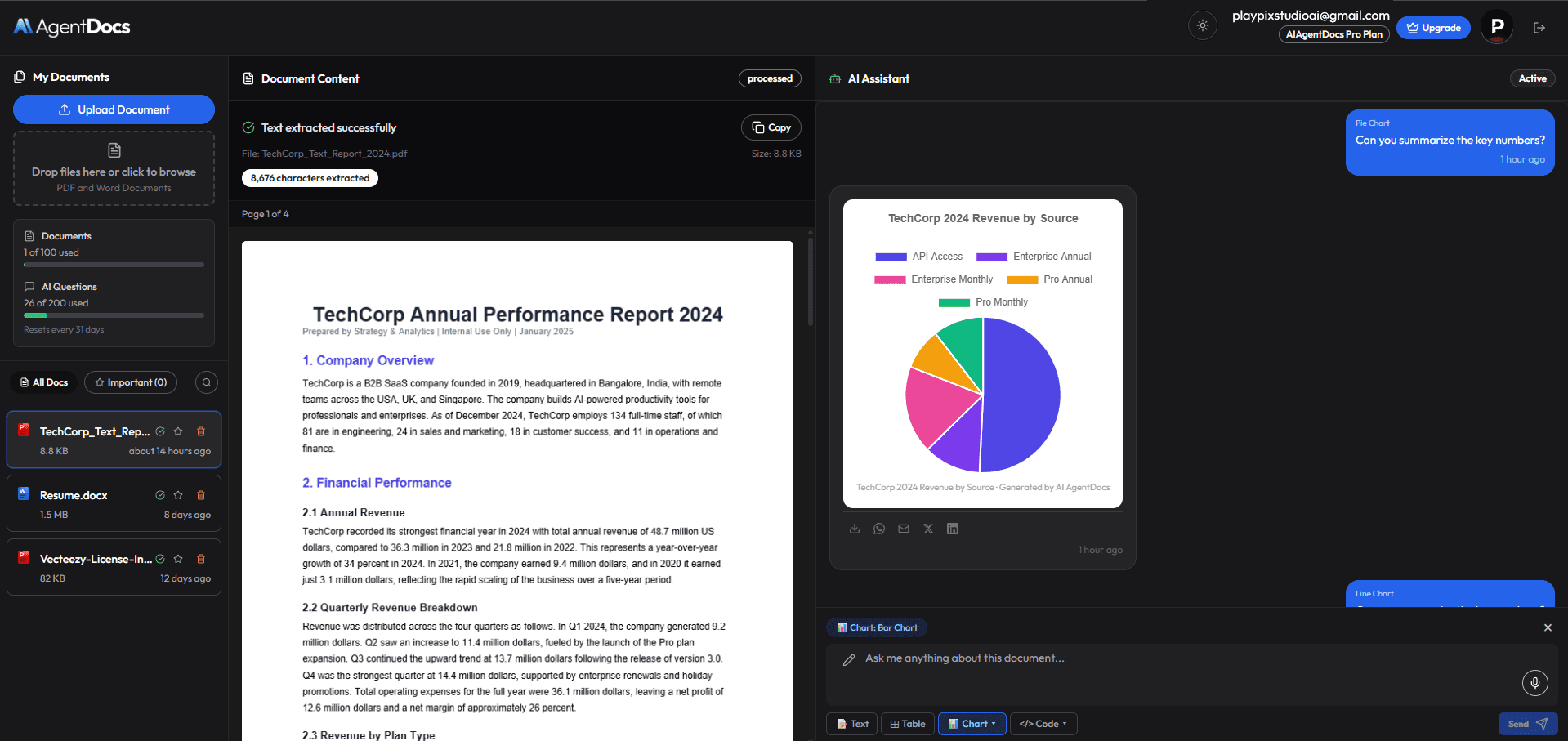 Go beyond text. Get instant charts, tables, and code from any document.